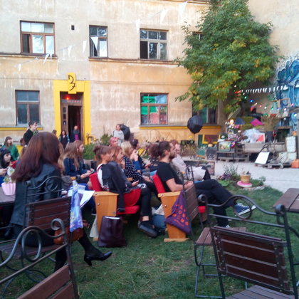 Kristīne Sinice lasīja savu darbu "Чорний клон". -